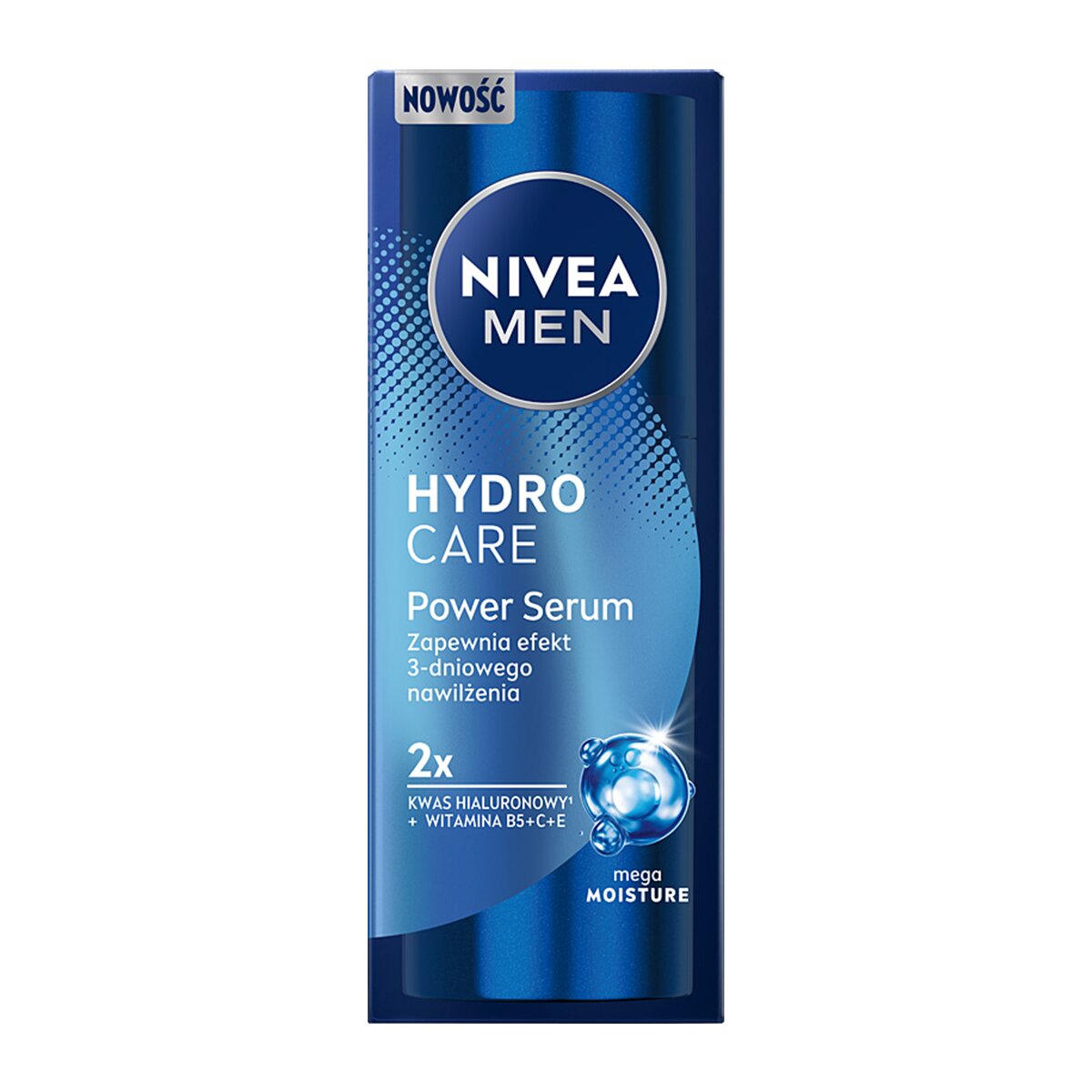NIVEA MEN® HYDROCARE Power Serum uzupełnia nawilżenie i zapewnia długotrwałe nawodnienie Twojej skóry: efekt 3-dniowego nawilżenia. Wnika w głębsze warstwy naskórka, aby dostarczyć nawilżenie bez uczucia ciężkości. Zapobiega wysuszeniu skóry. Połączenie 2 typów czystego kwasu hialuronowego dla długotrwałego uczucia nawilżenia. Makro kwas hialuronowy – intensywnie nawilża powierzchnię skóry. Mikro kwas hialuronowy – wnika głębiej w skórę, aby uzupełnić jej nawilżenie. Szybko wchłaniająca się formuła wzbogacona w witaminę B5 + C + E.