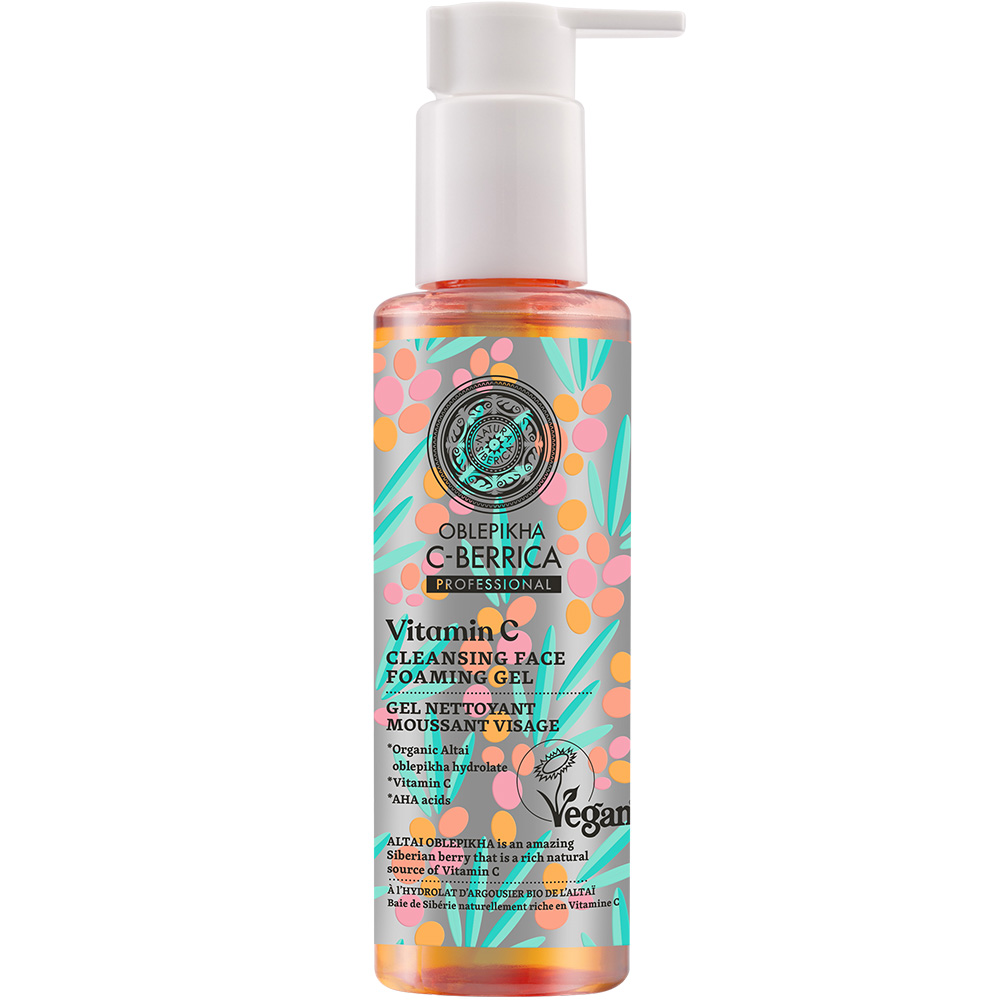 Wegański, oczyszczający żel do twarzy. Zawiera witaminę C w postaci aktywnej formy (SAP), która wzmacnia procesy obronne skóry i ujednolica jej koloryt oraz organiczny olejek z rokitnika ałtajskiego, który nawilża i odżywia skórę oraz stymuluje syntezę kolagenu. Kwasy AHA wyrównują strukturę skóry, odświeżają ją i rozświetlają. Produkt posiada certyfikat Vegan